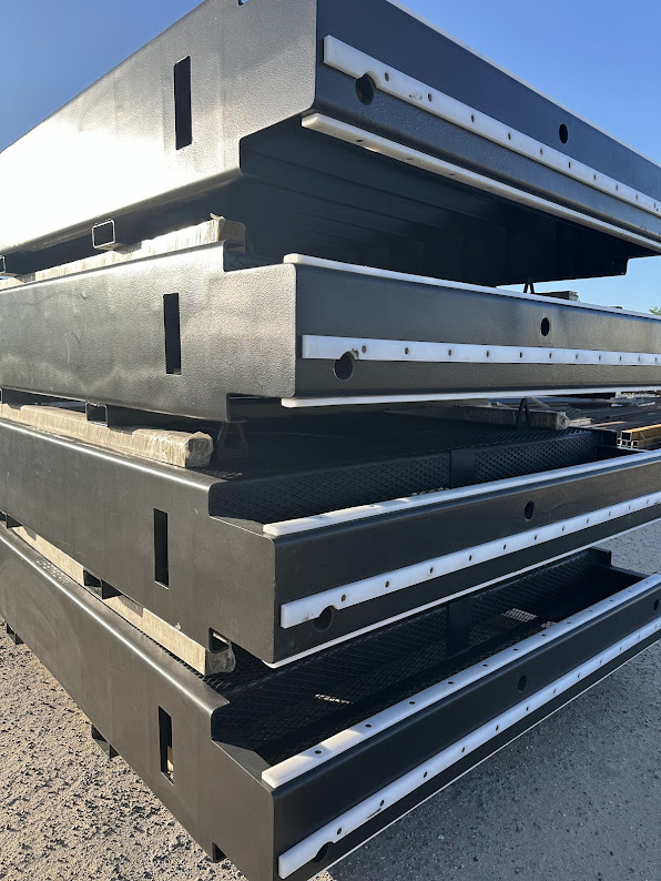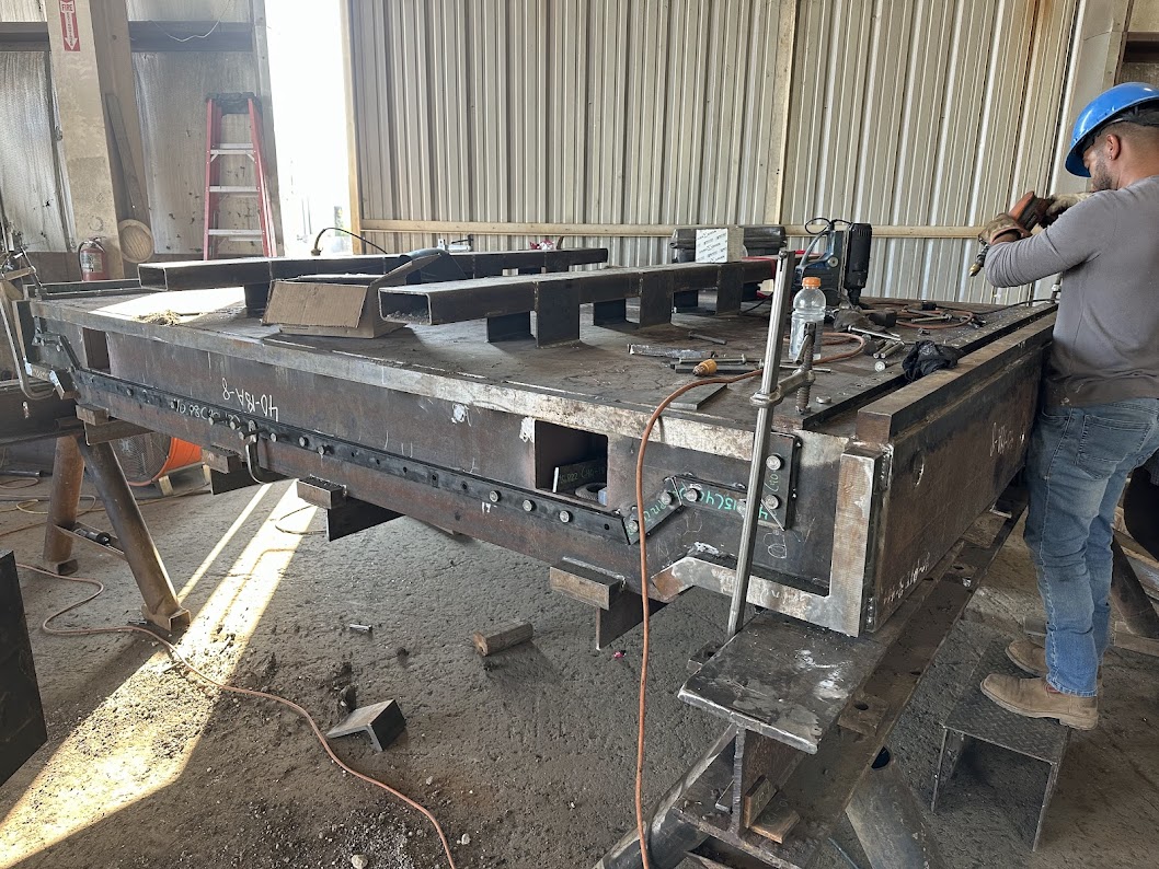 The dam in Honey Grove, Near Dallas, Texas, was being constructed to make a lake out of nothing. There is only one lake in Texas that isn’t man-made! We built the stainless steel guides that are embedded into the walls of the dam, the stainless steel trash racks and the steel stop logs. The challenge is the J Bulb Seals, which wrap around the stop logs, keeping them straight while welding, and making them so they slide easily into the slots. The trash screens had to use Anti-Fouling paint by Jotun to keep Zebra mussels from growing on them. We learned how to apply this paint successfully. It’s kind of “gritty” so the mussels won’t stick to it.